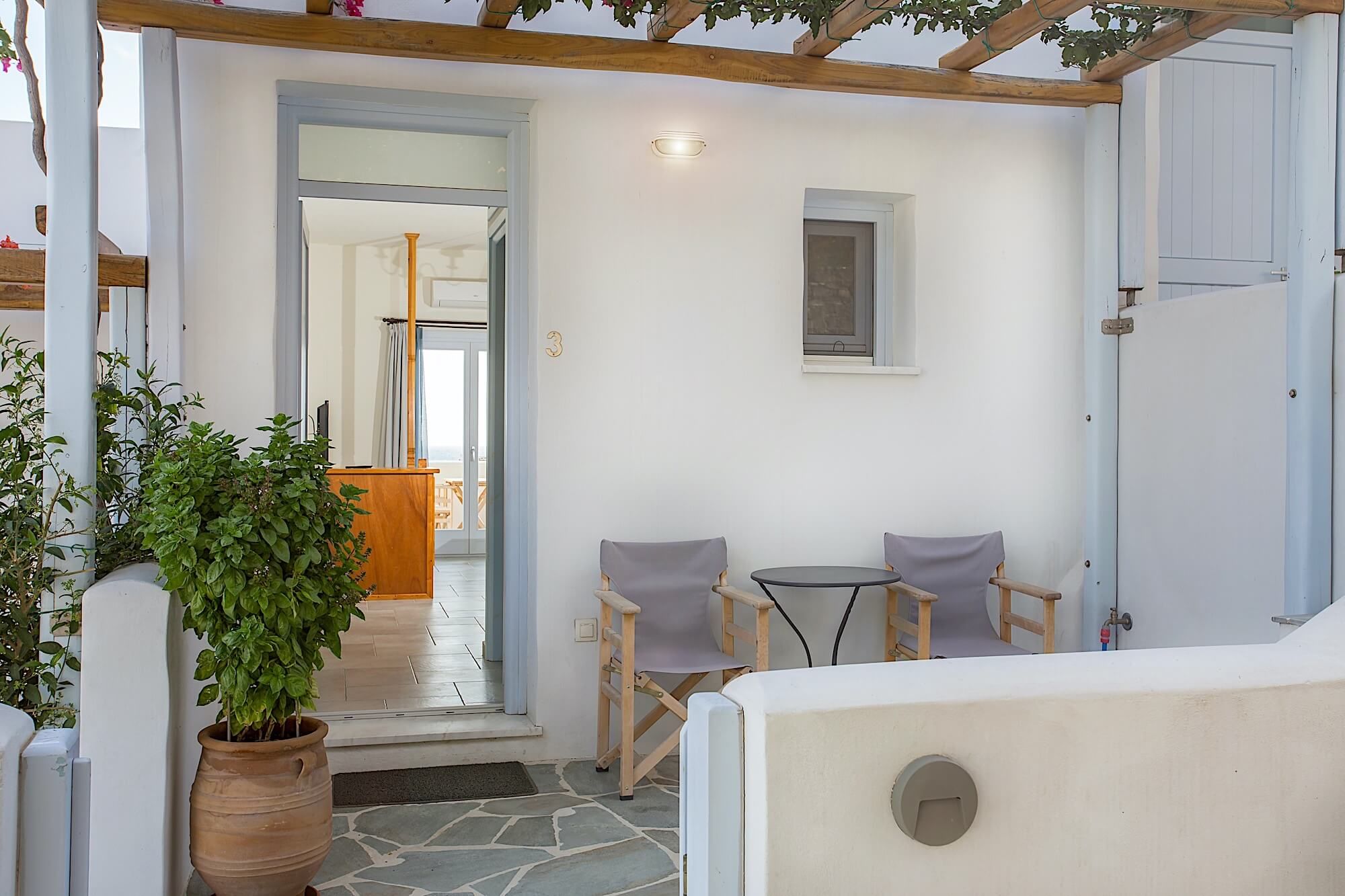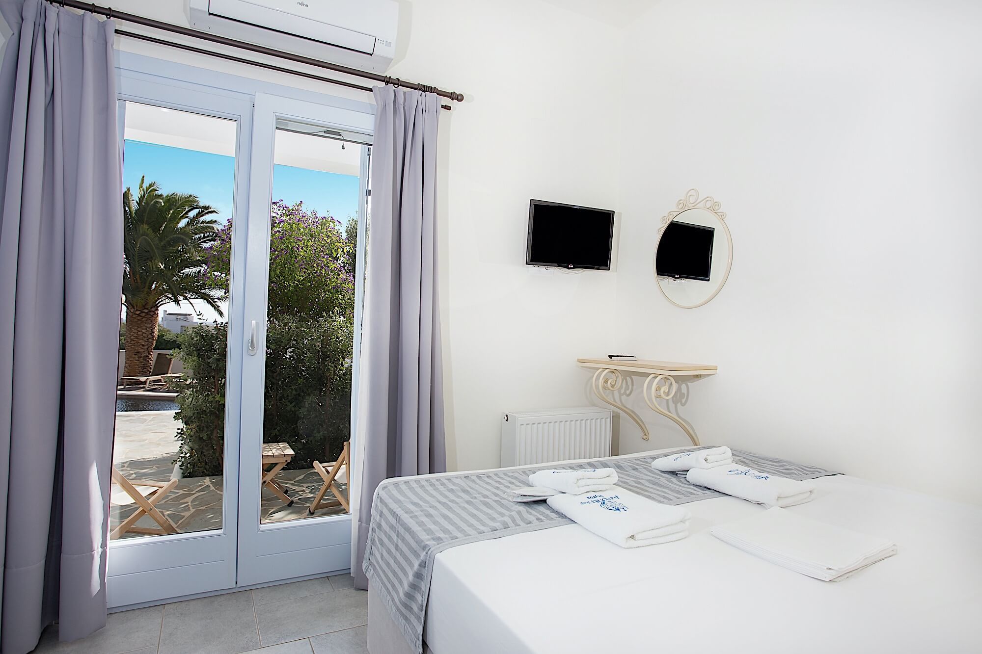Στο κάτω ισόγειο υπάρχει υπνοδωμάτιο με διπλό κρεββάτι, flat τηλεόραση, air condition, μπάνιο με ντουζιέρα. Αυλή με 2 σεζλόνγκ και τραπεζάκι , θέα στον κήπο και στη πισίνα.